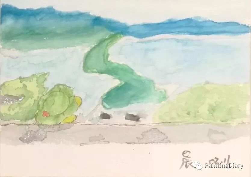 TA画了第一幅水彩作品,