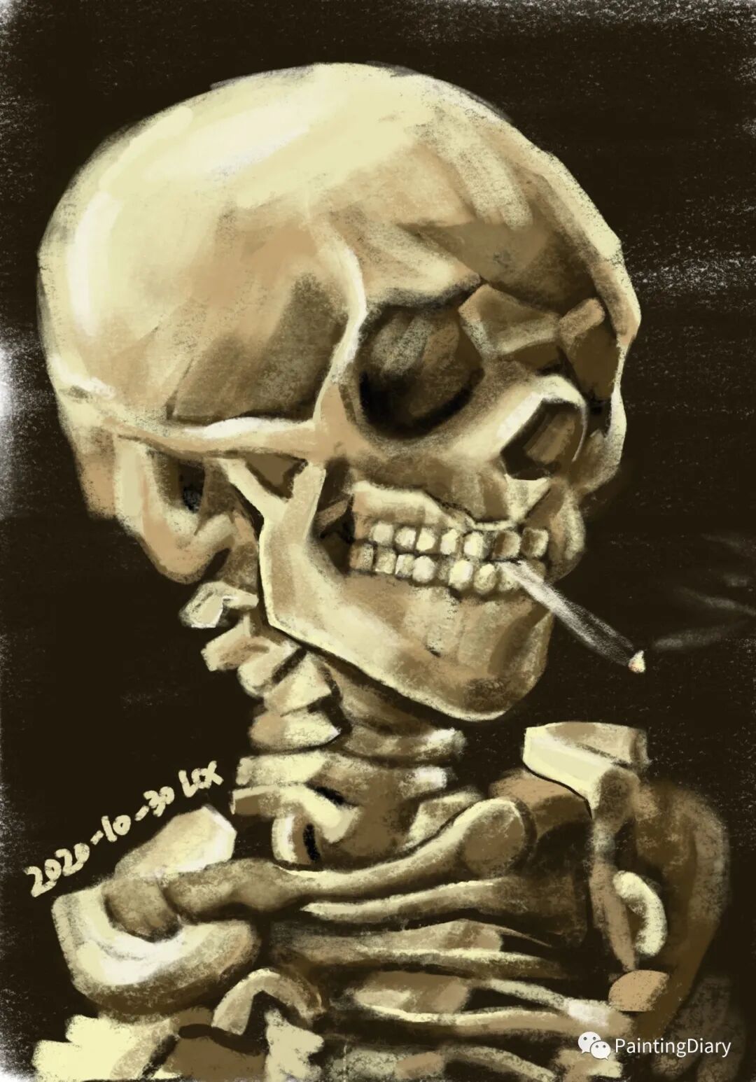 今天应个景,画个梵高的《吸烟头骨》。