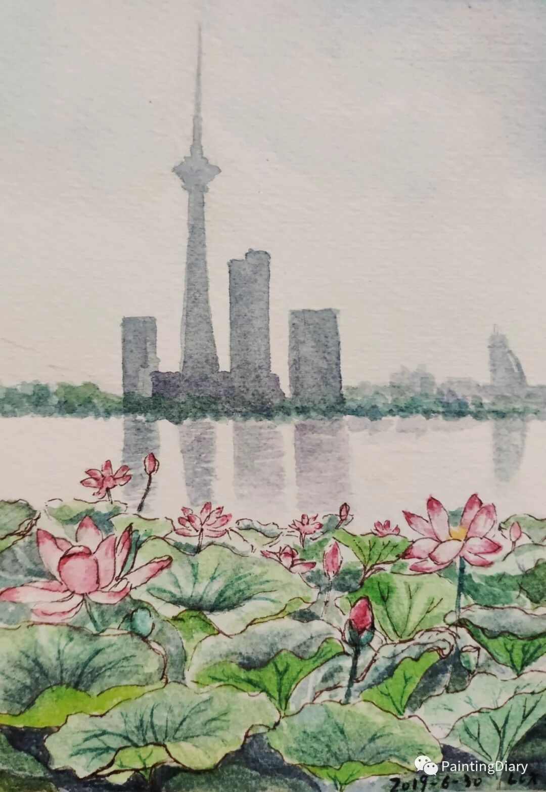 天塔与倒影,