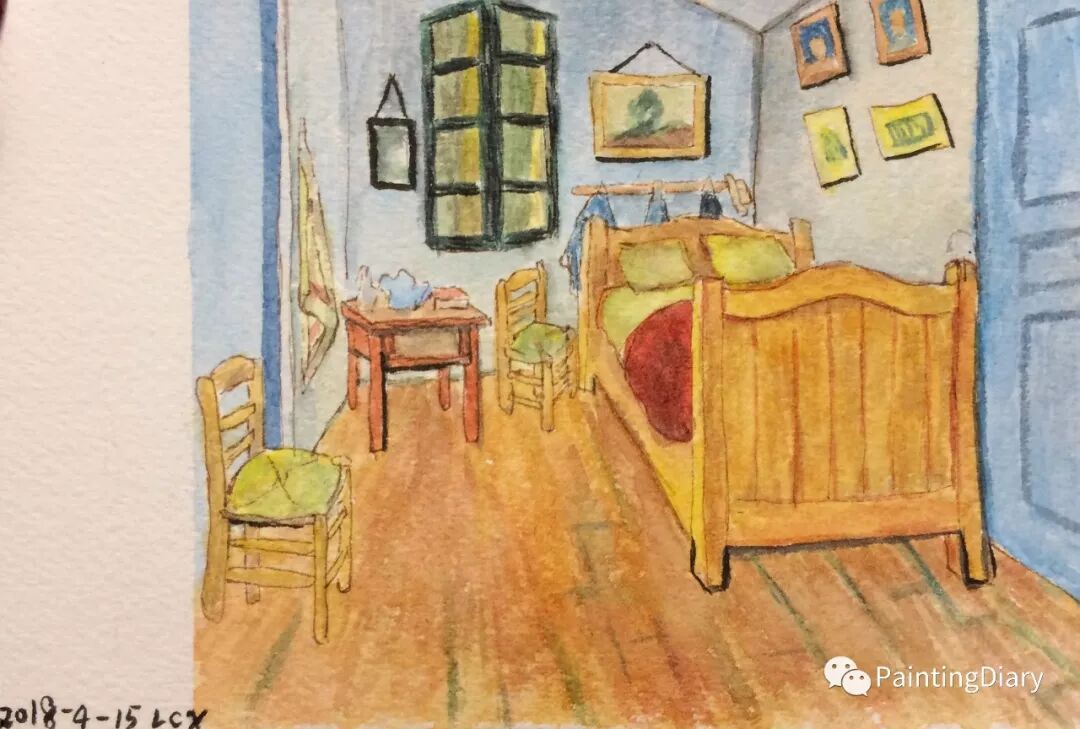今天临摹的是梵高的《阿尔勒的卧室》,