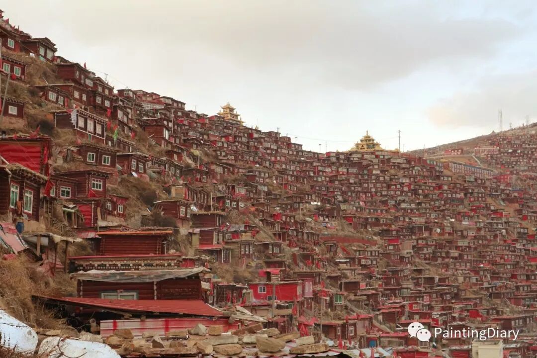看到这张画,我立刻想起了之前去色达佛学院时看到的壮丽景色。